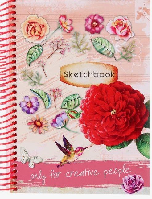 Скетчбук А5, 80л, КРАСНАЯ РОЗА И КОЛИБРИ (СК-0027/80-9192)на спир, 7БЦ, глянц. лам